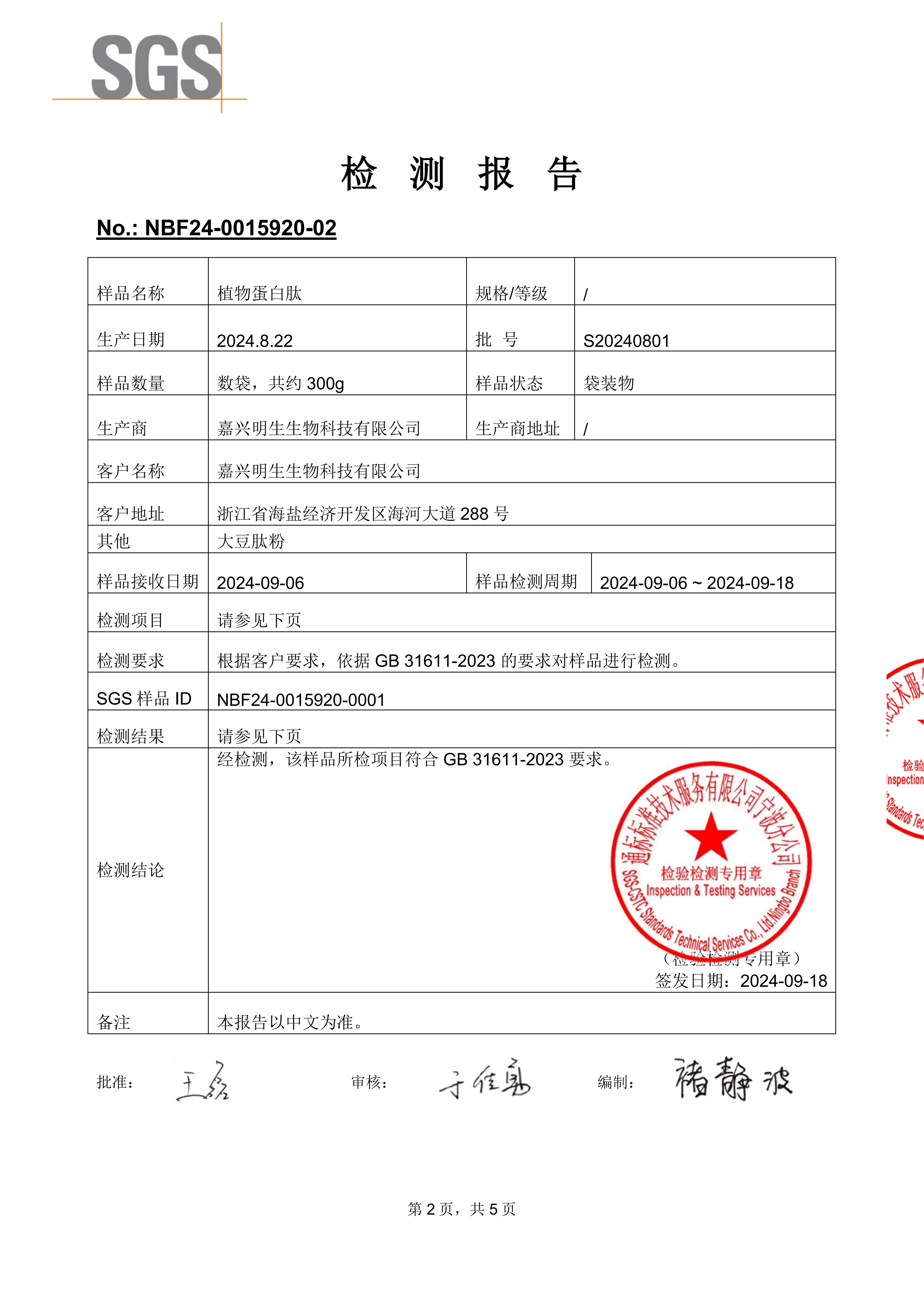 鱼胶原蛋白固体饮料检测报告2